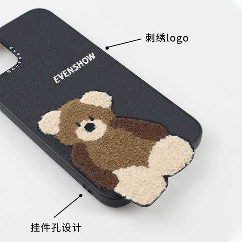 EVENSHOW original small bear genuine leather embroidery iphone12 Apple 13promax mobile phone protective shell x xr new 11