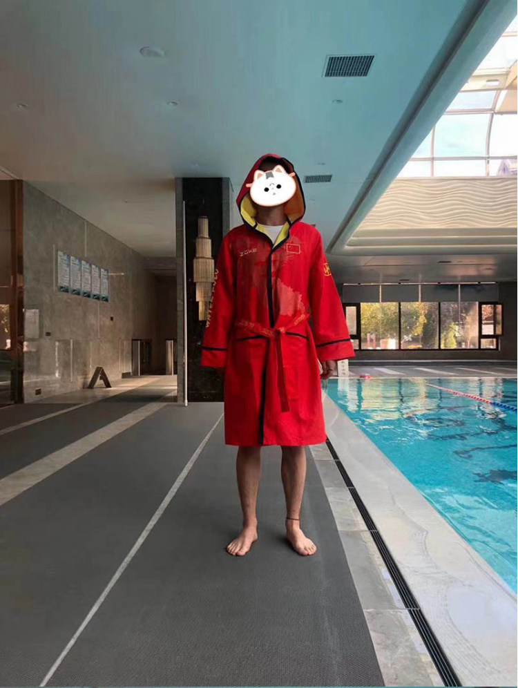 ZOKE Chau's new male and female children's water teams with the same anti-chilling hat swimming competition bathrobe men