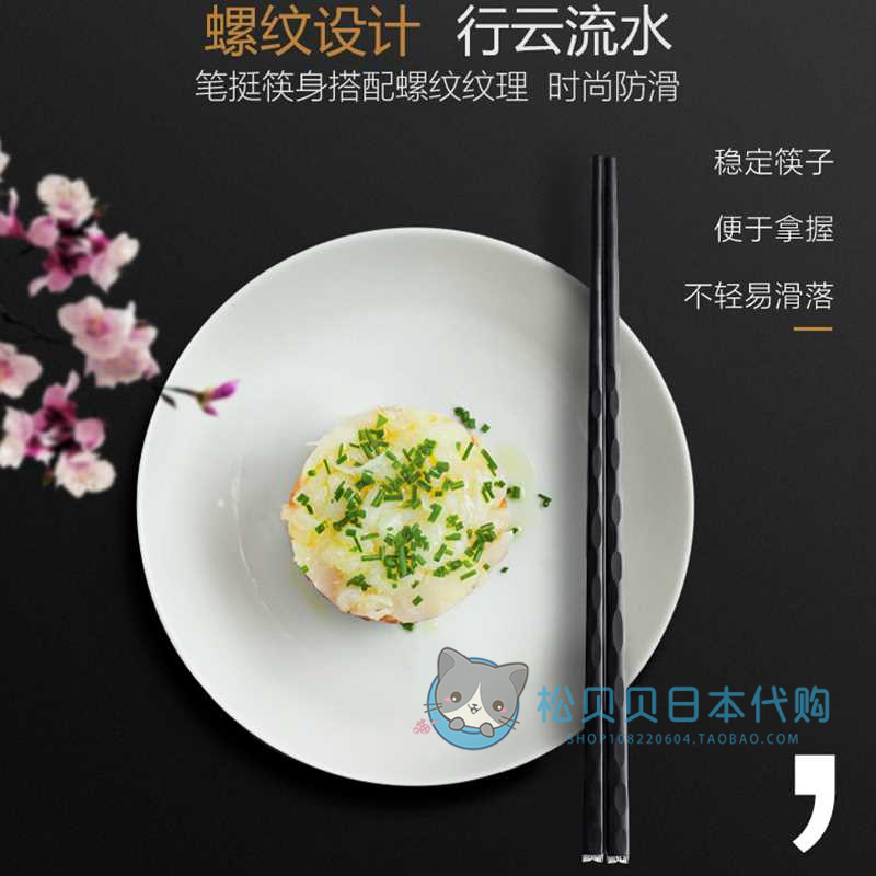 Japan imported hapins alloy chopsticks for household fashion, non-slip, mildew-resistant and high-temperature resistant household stainless steel threaded chopsticks