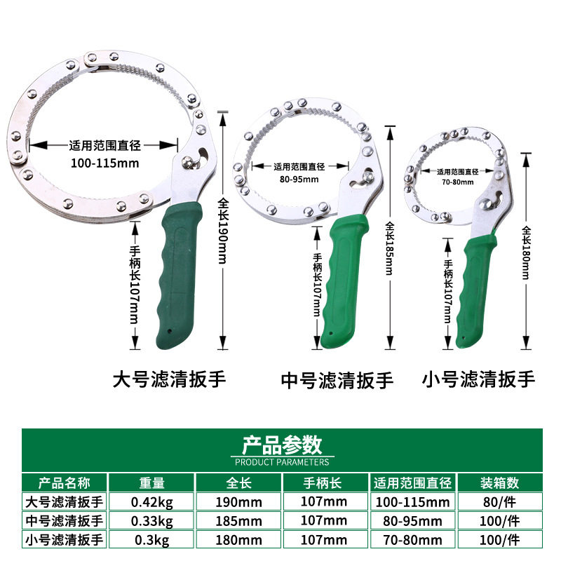 Handcuffs Trumpet (Sedan Generic Dismantling 65-80mm) Handcuffs Mid (disassembled 80-95mm) Handcuffs Big (disassembled 95-115mm) 8 inch chain wrench (disassembly 60