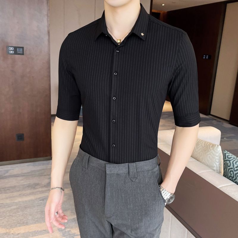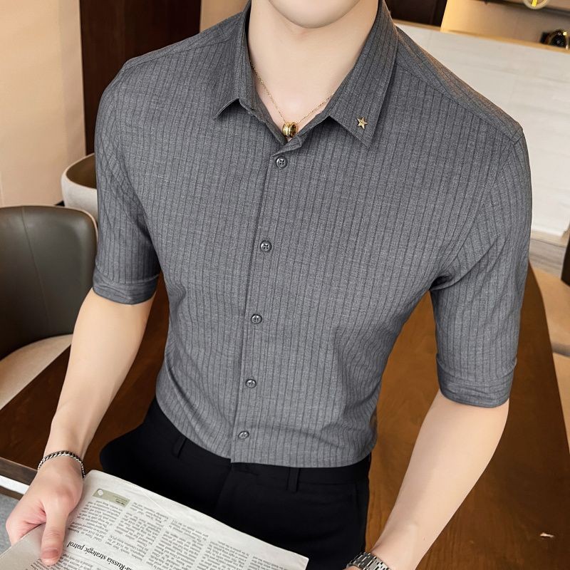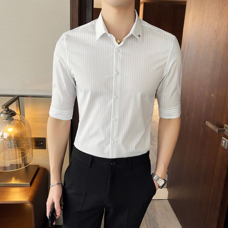 Brand men's summer shirt Short sleeve slim Korean version handsome seven-point shirt Business casual half sleeve five-point