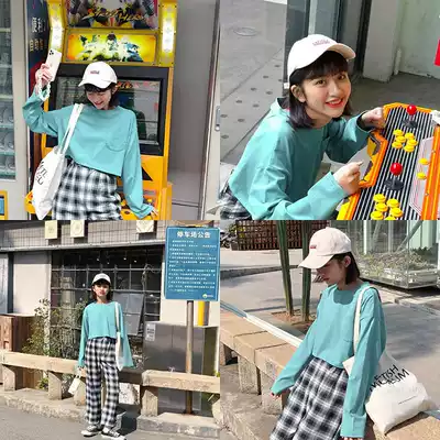 (Spot)Loyal dog Xiaohachi pear-shaped homemade-half pond mint-youth long-sleeved short loose sweet style T-shirt women