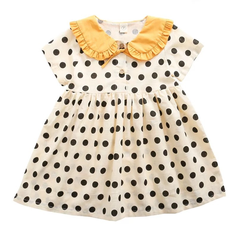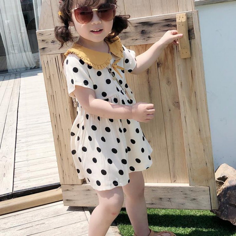 Girls summer Korean skirt polka dot doll collar dress children's princess skirt 2021 summer dress new foreign trade children's clothing