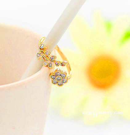 Japan and South Korea adjustable fashion diamond twisted leaves Ruyi flower opening ring simple couple light luxury ring female