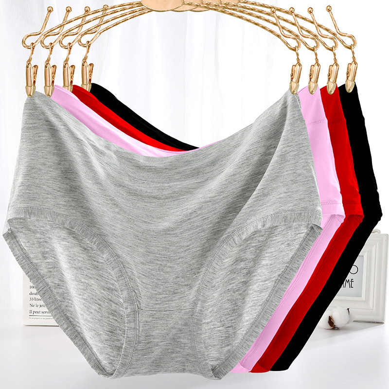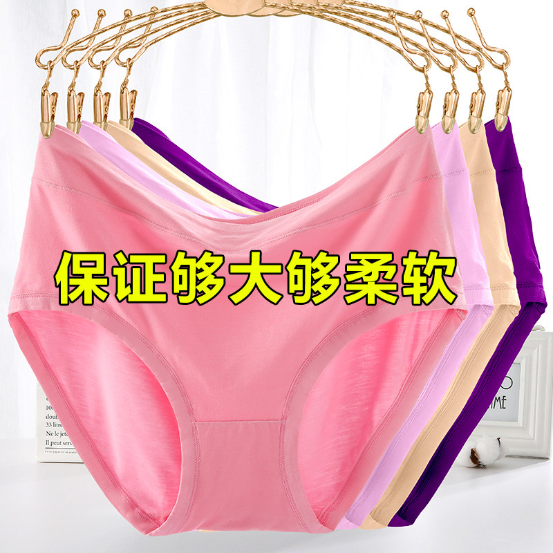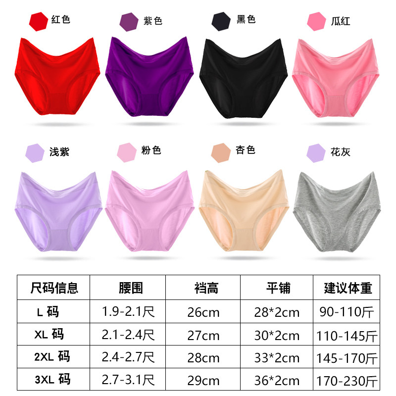 Modal high-waisted panties women's large size 200 pounds simple solid color briefs head cotton crotch middle-aged belly