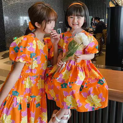 Fried Street parent-child clothing summer 2021 New Tide mother women Korean version of foreign style flower dress seaside holiday princess skirt