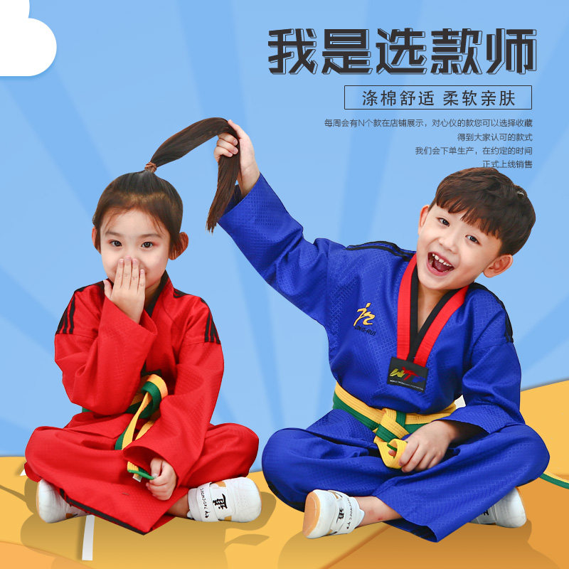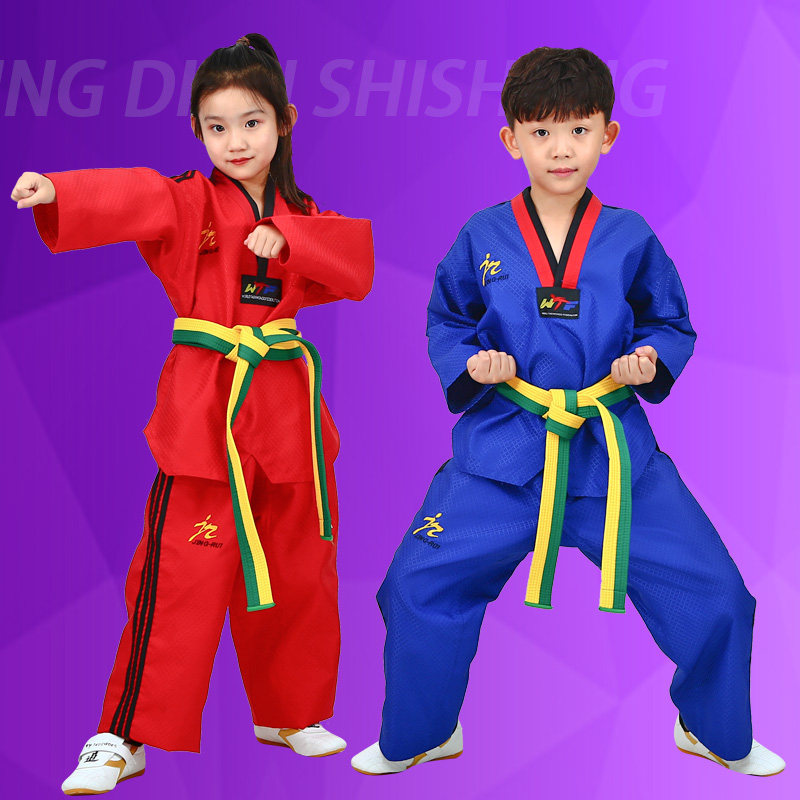 Children's taekwondo clothing adult customized Taoist clothing red blue black coach clothing men's and women's clothing training clothes full set