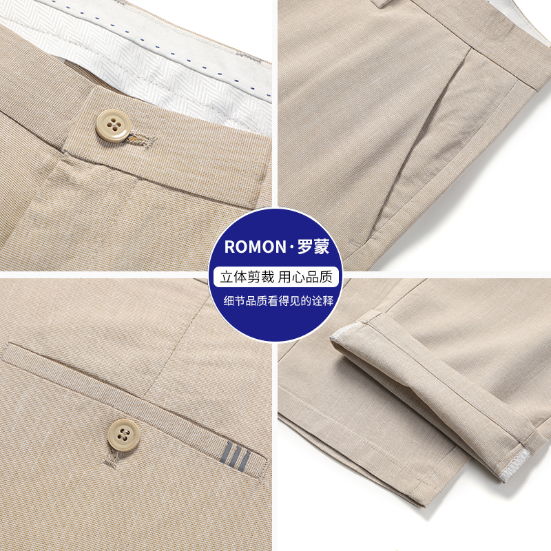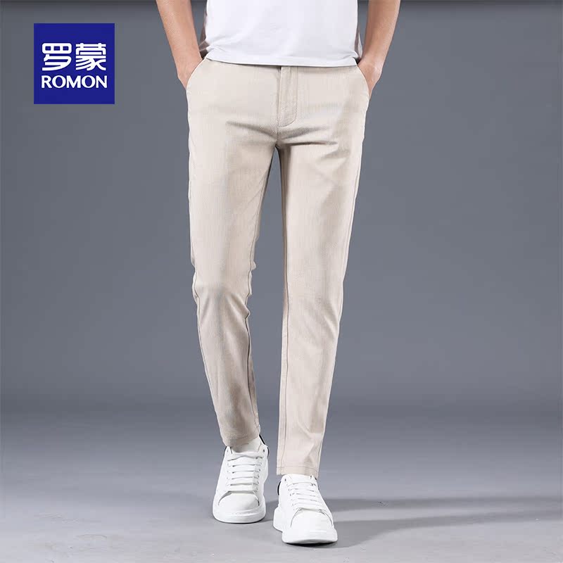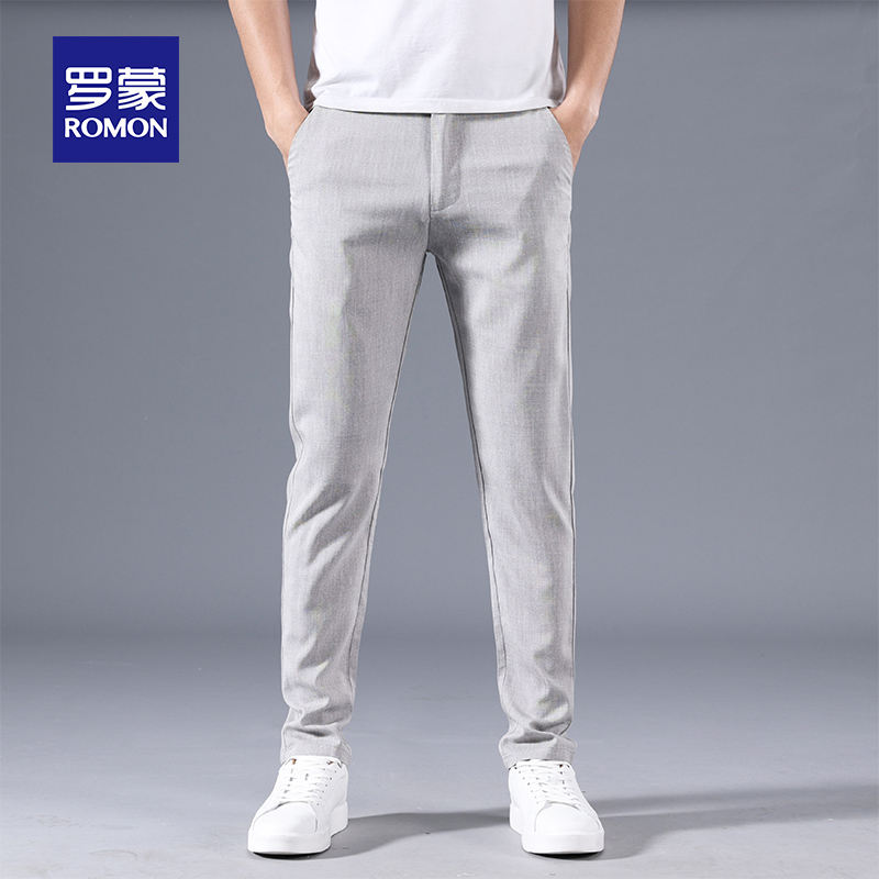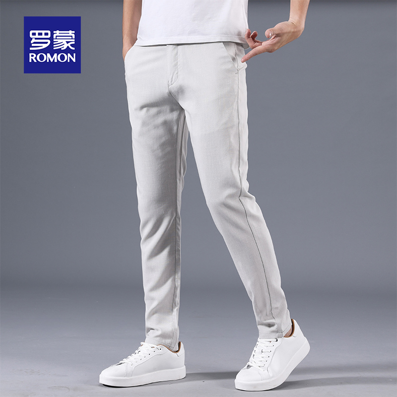 Romon linen men's casual pants slim trend comfortable men's summer thin Korean version of youth tencel long pants