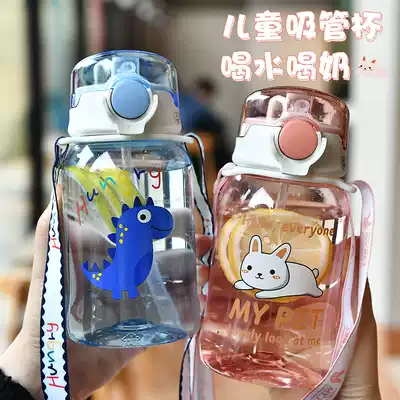 Tritan water Cup portable men and women Summer Children plastic with straw Cup pupils cute drop-proof Cup