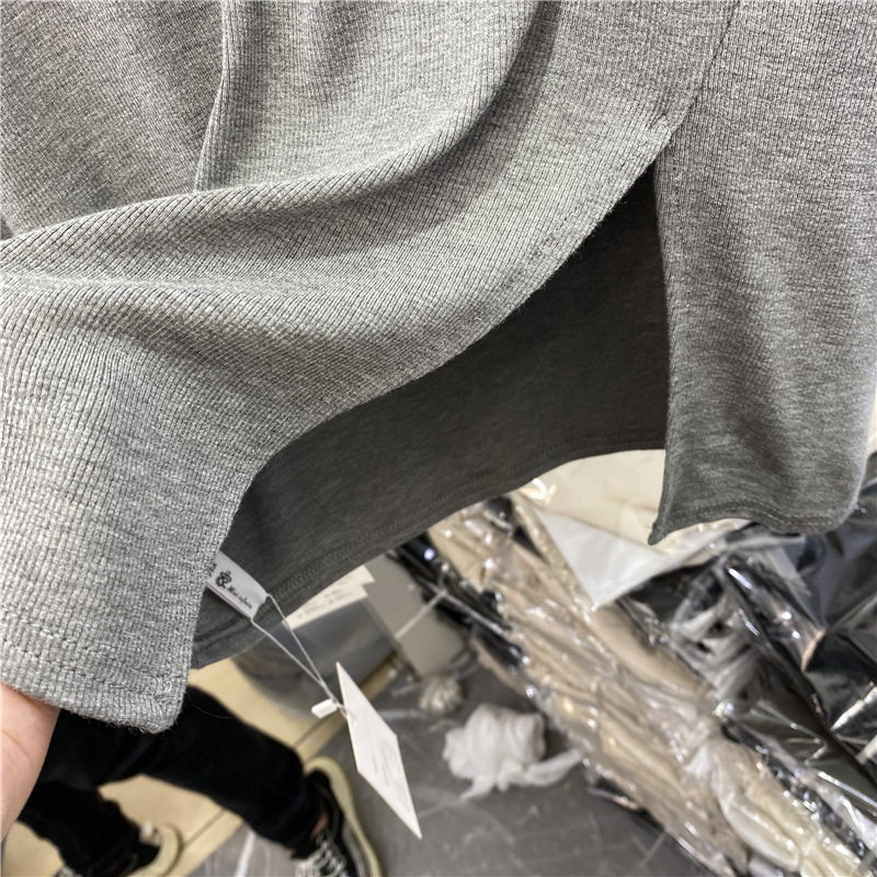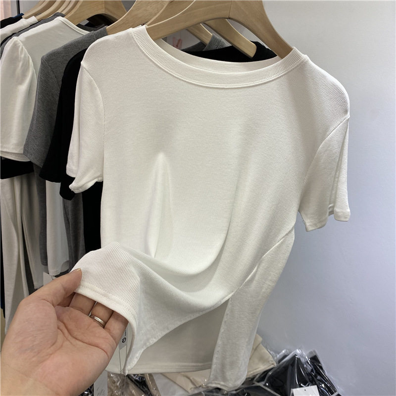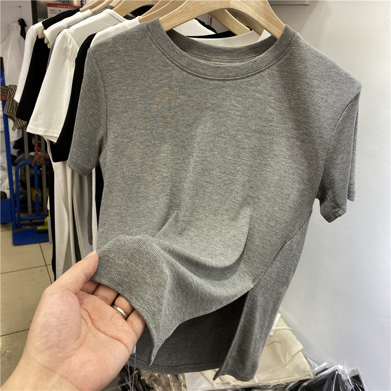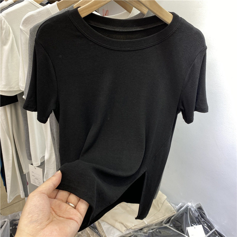 European goods threaded short-sleeved T-shirt women 2022 summer new design sense hem slit half-sleeved T-shirt top ins tide