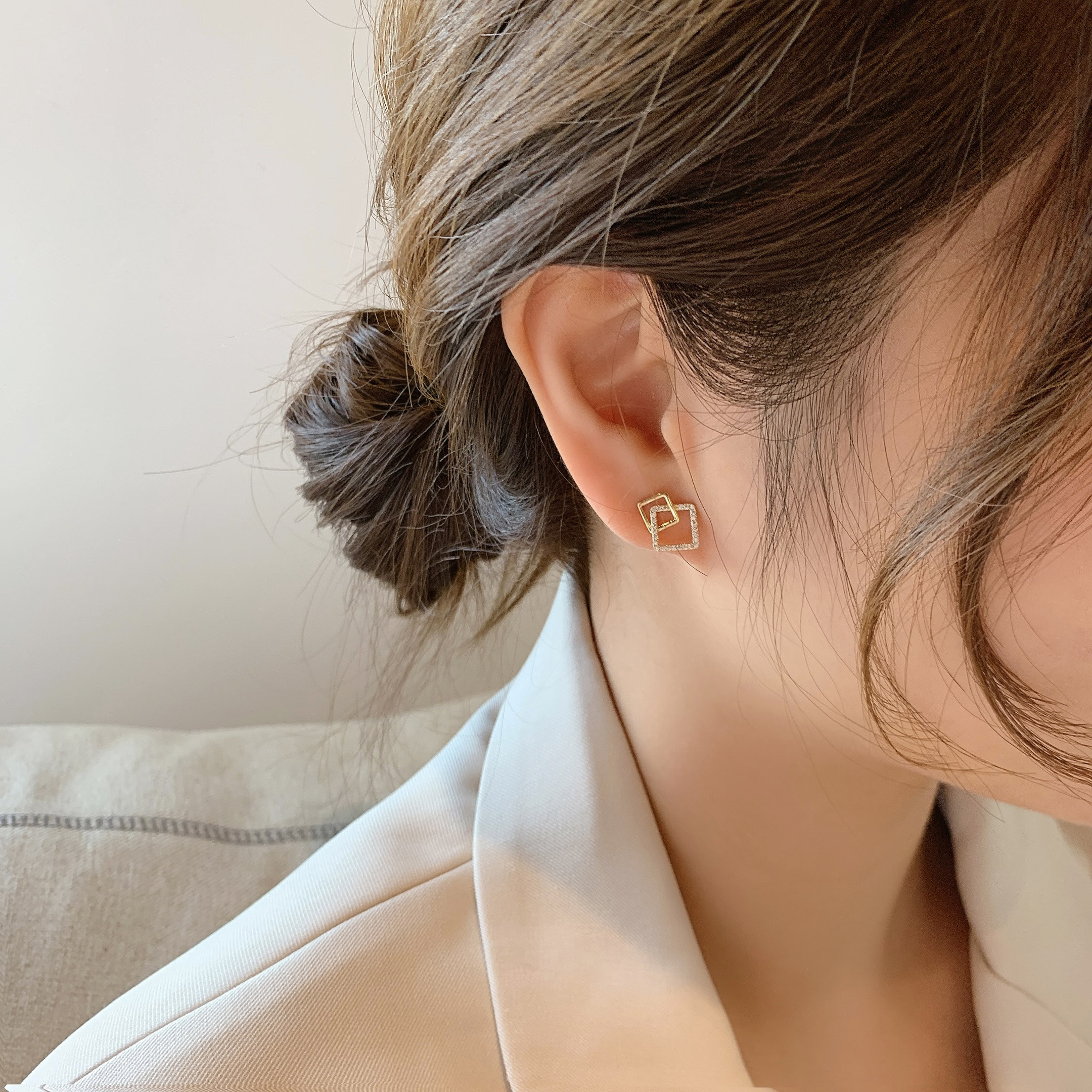 Ear pins women's sterling silver cold wind geometric square earrings Korean high-end sense of light luxury simple atmosphere small earrings trend