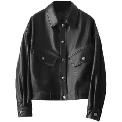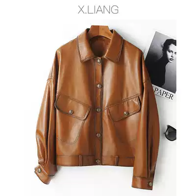 2021 New Haining motorcycle leather women's leather spring and autumn short fashion leather jacket sheep leather autumn coat