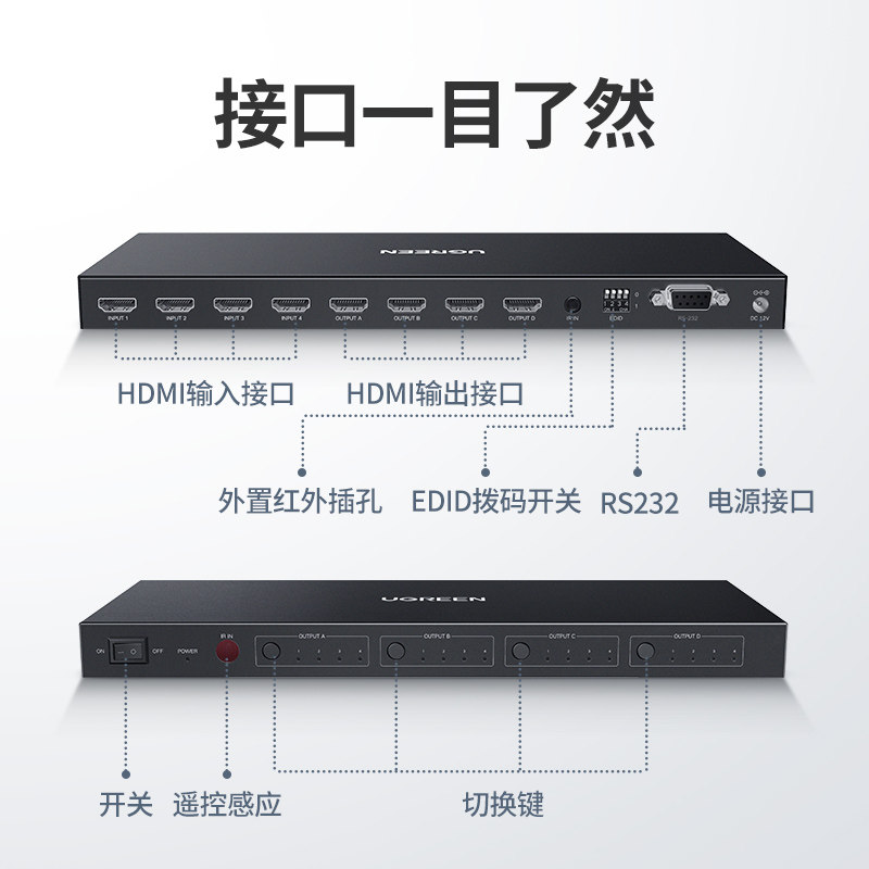 Green Union 70436 hdmi matrix 4 in 4 out switcher Internet 4k high-definition film digital mixing chscreen distribution