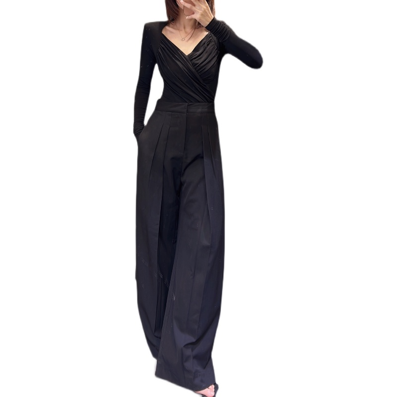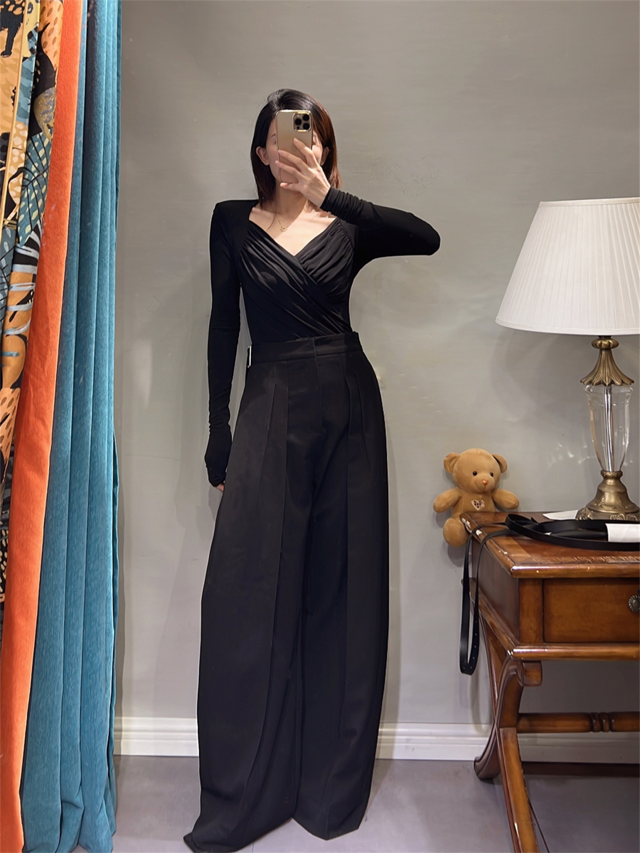 High-set Heavy Industries High waist and wide feet Western dress pants Misdemeanor wind spring and summer double folds with wide leg pants 2022 Hinch tall and thin
