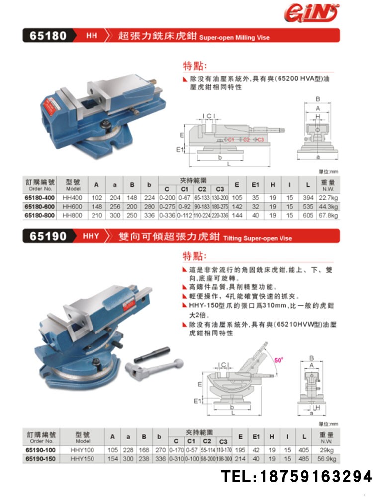 Taiwan Extension Milling Machine GIN-HH400 HH600HH800 Large Open Flat Clip Clip 65180
