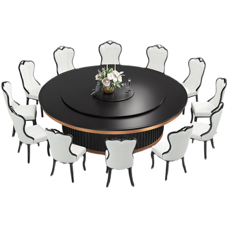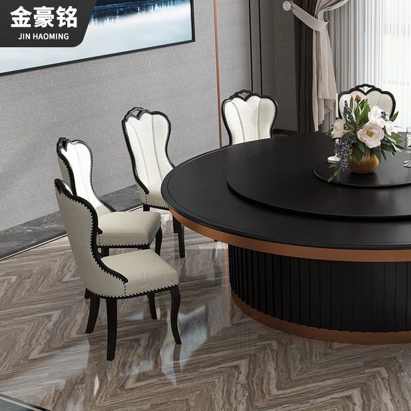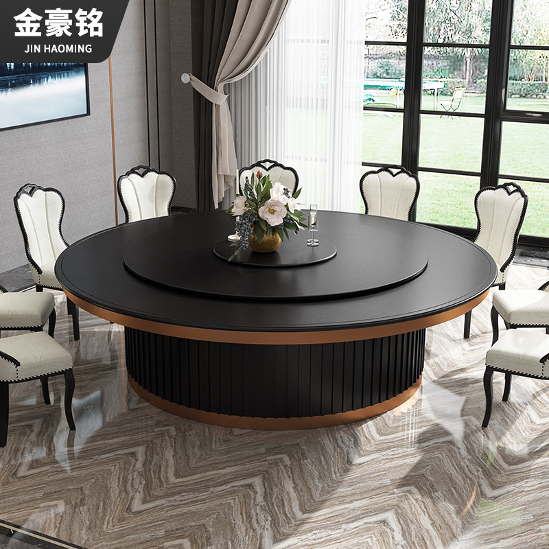 Jinhaoming hotel stainless steel edging electric dining table and chairs banquet commercial furniture dining room automatic rotating hot pot table