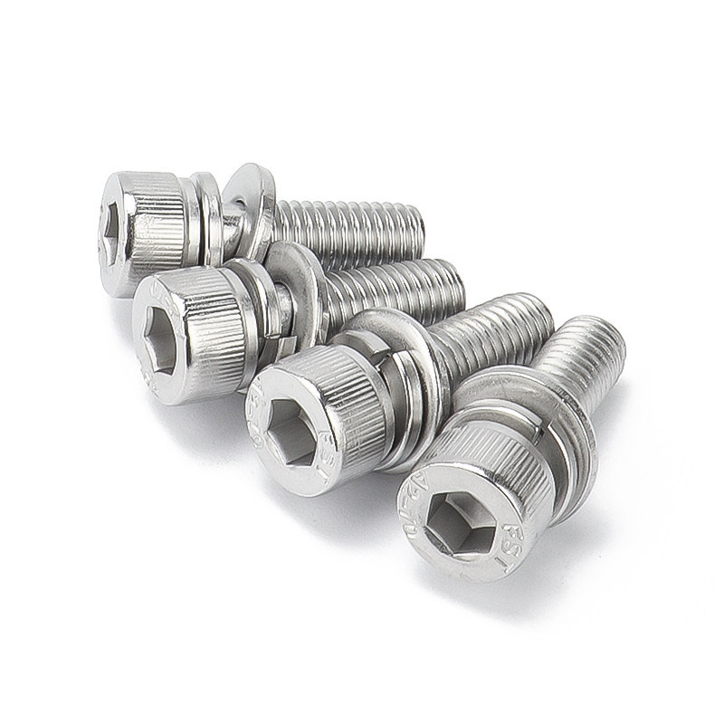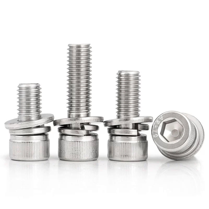 304 stainless steel hexagonal triple combination screw cylindrical head bolt flat elastic pad M2M3M4M5M6M8M10M12