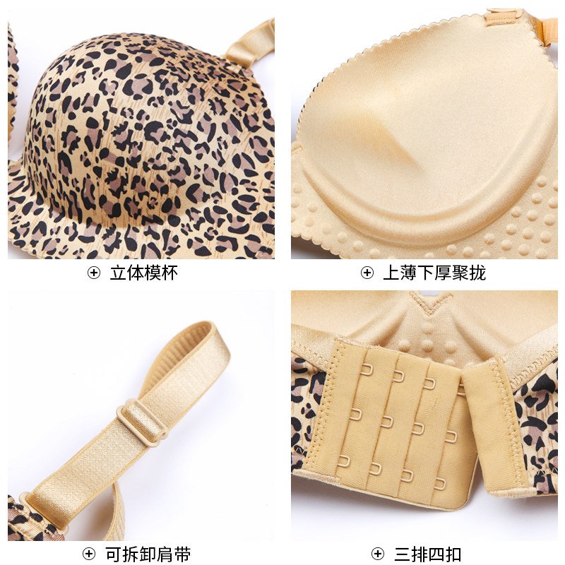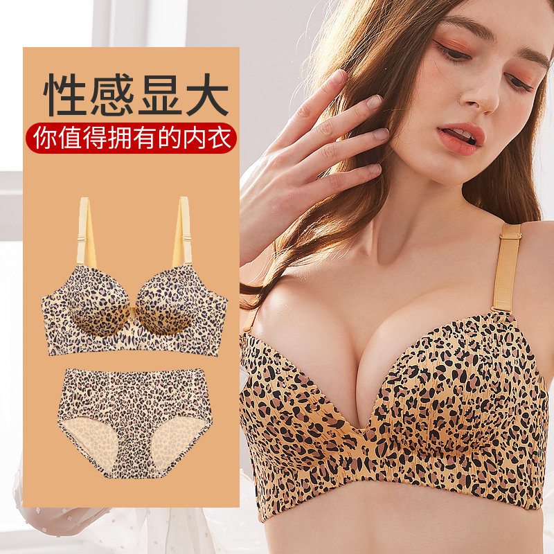 Lingerie women's underwire-free sexy leopard print bra small breasts gathered without marks anti-sag retracted breast adjustment bra set