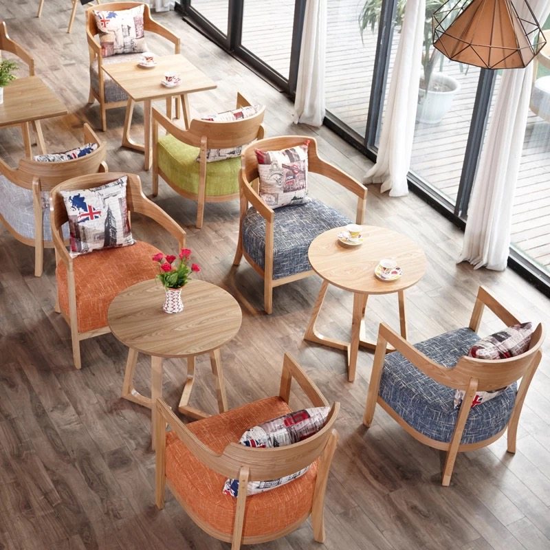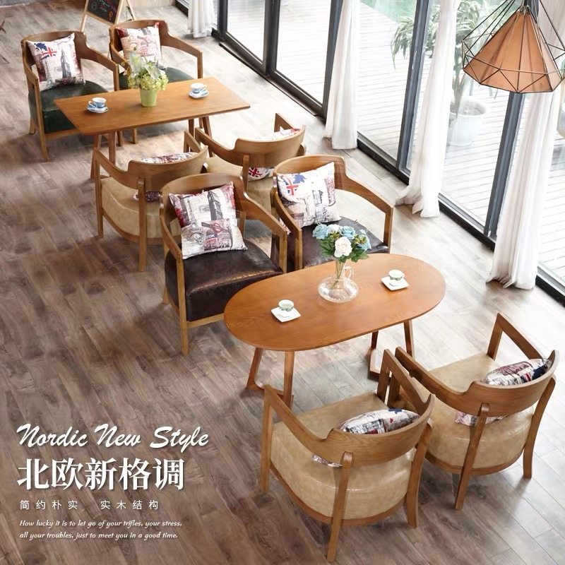 Green cloth chair, white cloth chair, dark blue cloth chair, orange cloth chair, light blue cloth chair, green leather chair, coffee-colored leather chair, dark green leather chair, light blue leather chair, walnut-colored long table, walnut-colored square table, walnut-colored oval table, walnut-colored round