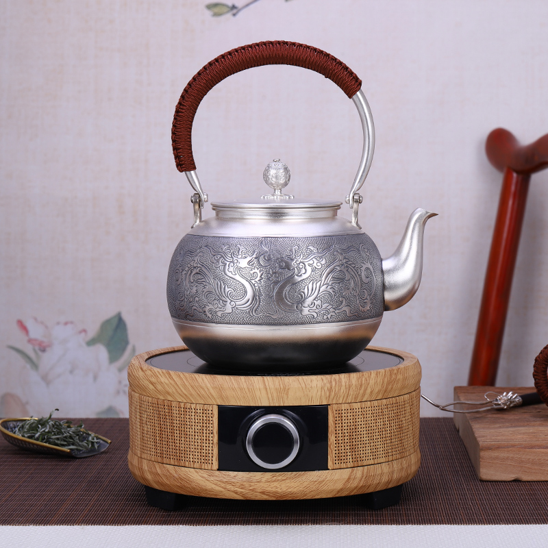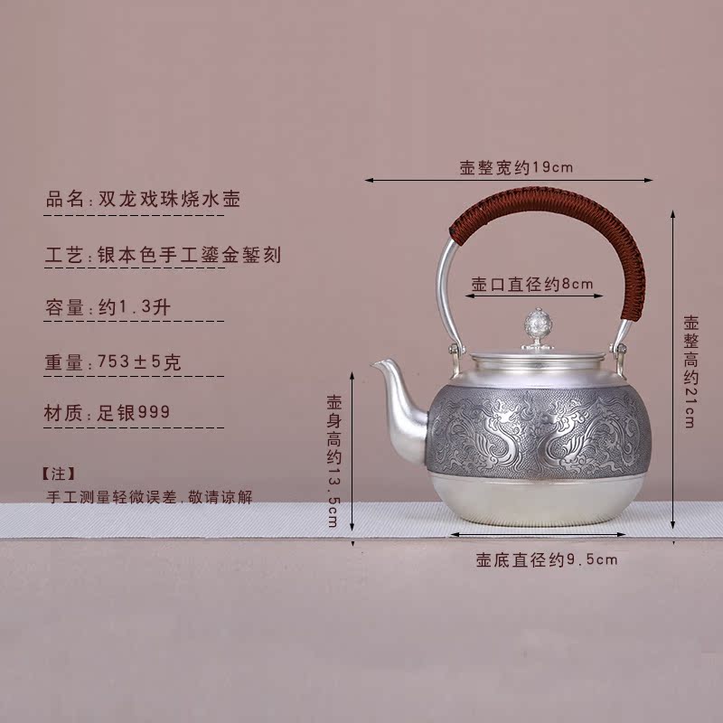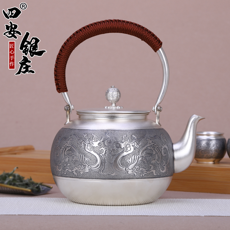 Xianglong Nazhu silver pot sterling silver 999 kettle pure handmade one silver pot to cook teapot household Si'an Yinzhuang