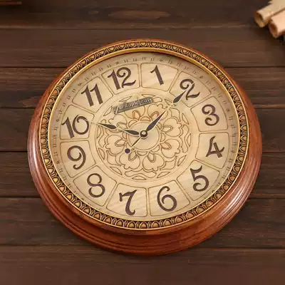 New Chinese solid wood wall clock living room home clock creative wall clock silent American retro decorative quartz clock