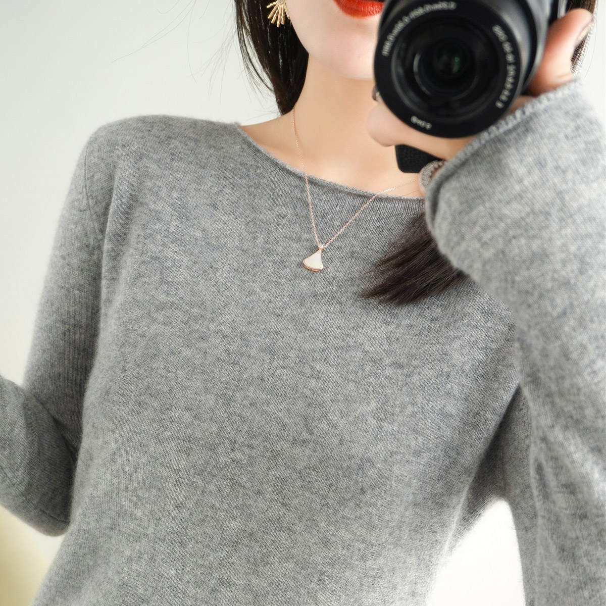 2023 New sleeve sweater wears a short coat with a long sleeve collar