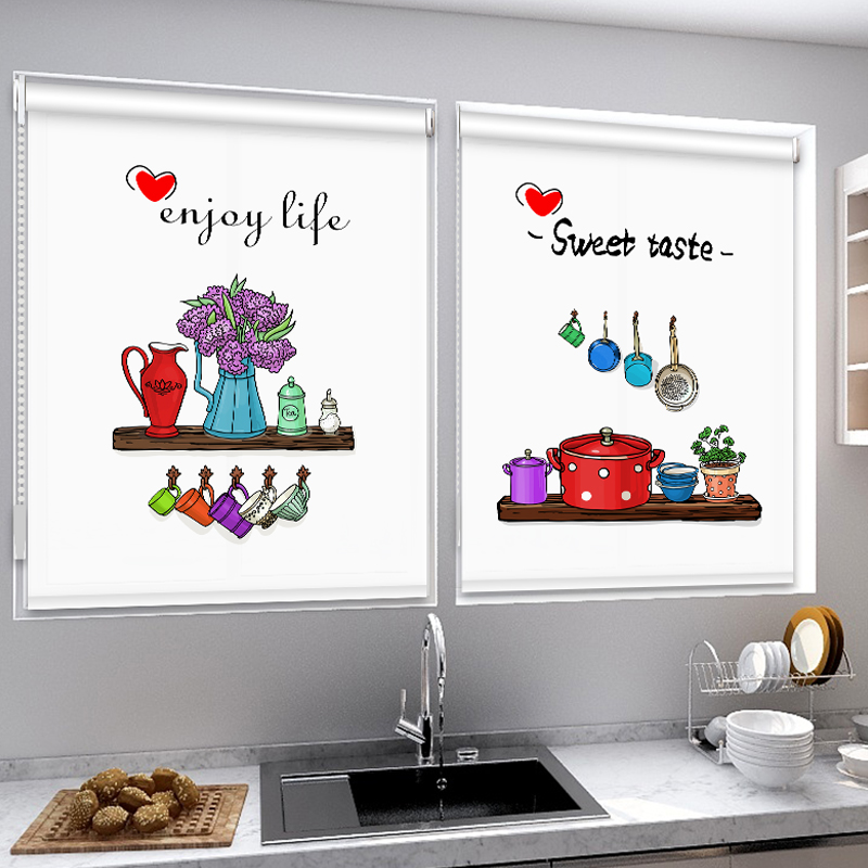 Nordic Wind Roller Blinds Curtains Kitchen Shading Bathrooms Waterproof Roll Pull-out Lift Hand blinds Blinds Free to Punch Mounts-Taobao