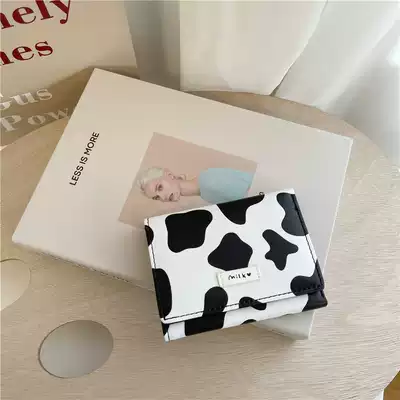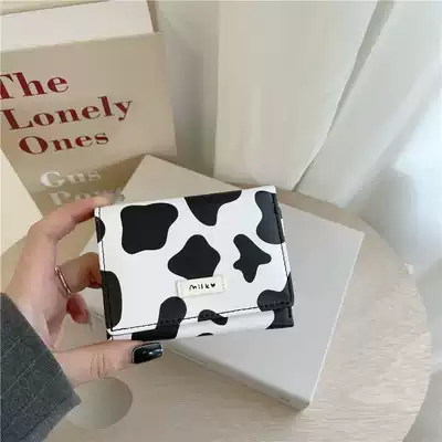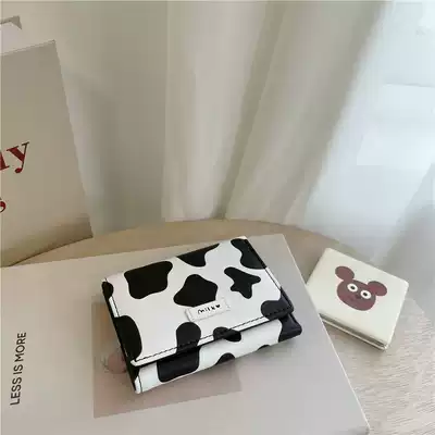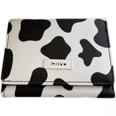 Korean ins soft cute pup leather three fold cute milk pattern multifunctional portable short clip card bag coin wallet