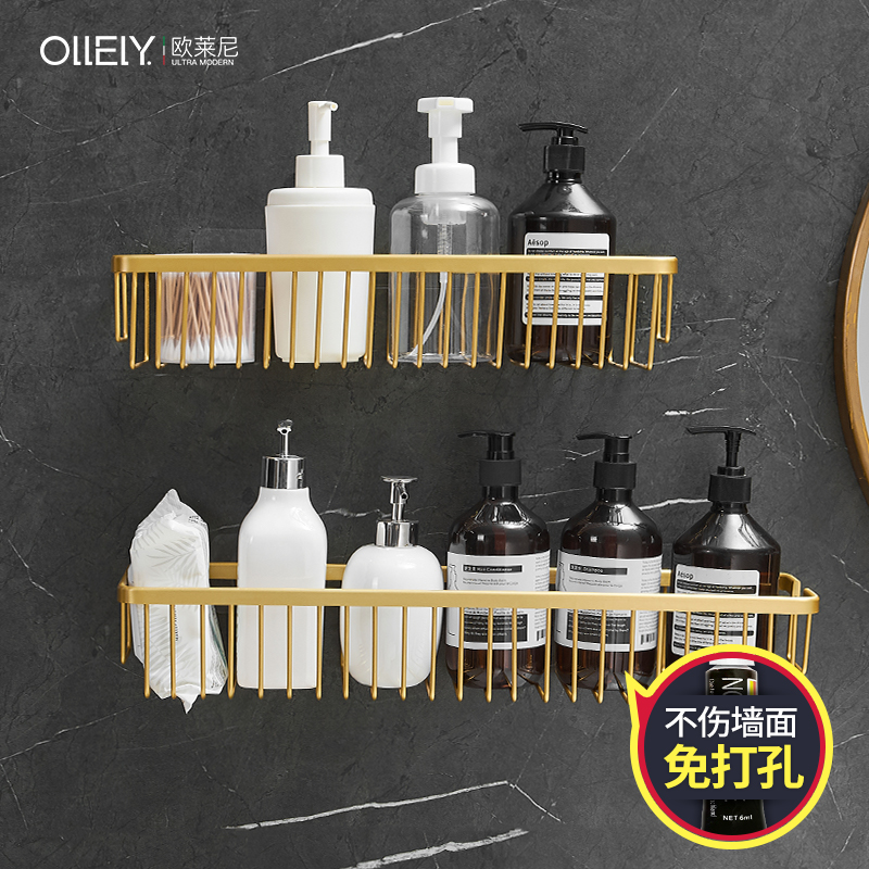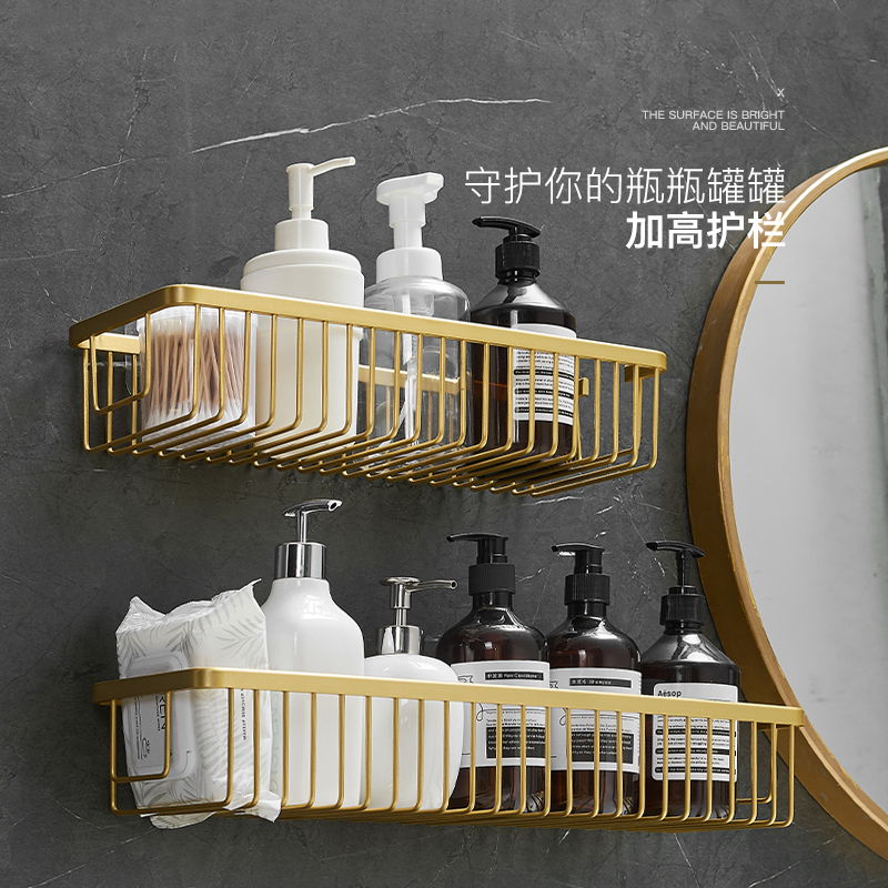 Space Aluminum Golden Basket Toilet Shelve Net Basket Wall Bathroom Makeup Room Wall-mounted Basket Free body Bath Lotion