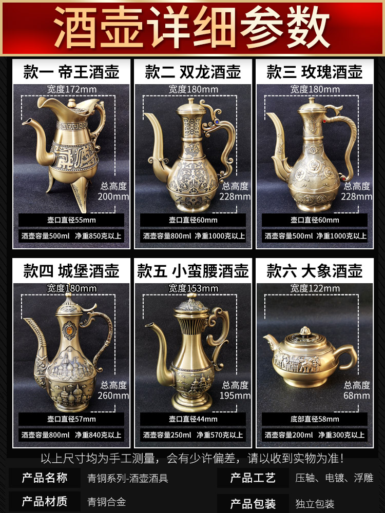 Liquor wine jug with cover household one catty bronze wine jug high-end light luxury ancient retro wine divider wine cup