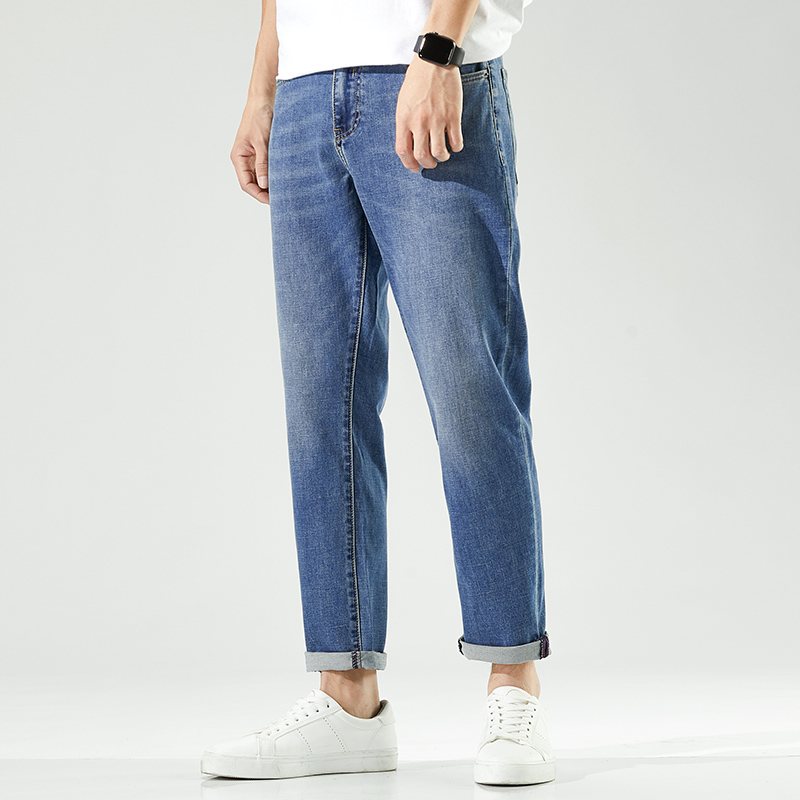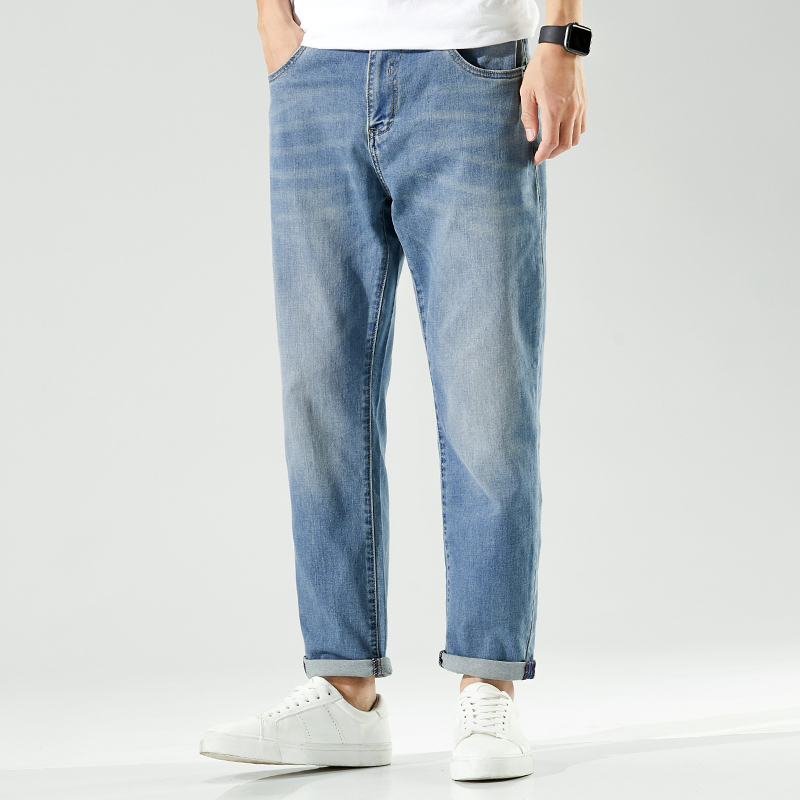 Hanska summer thin jeans men's nine-point pants loose straight tube tide brand light slim slim small feet casual pants men