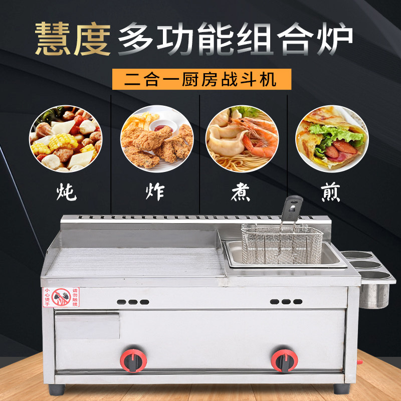 Commercial gas griddle frying furnace all-in-one machine stall hand cake machine Teppanyaki equipment Teppanyaki cold noodle machine