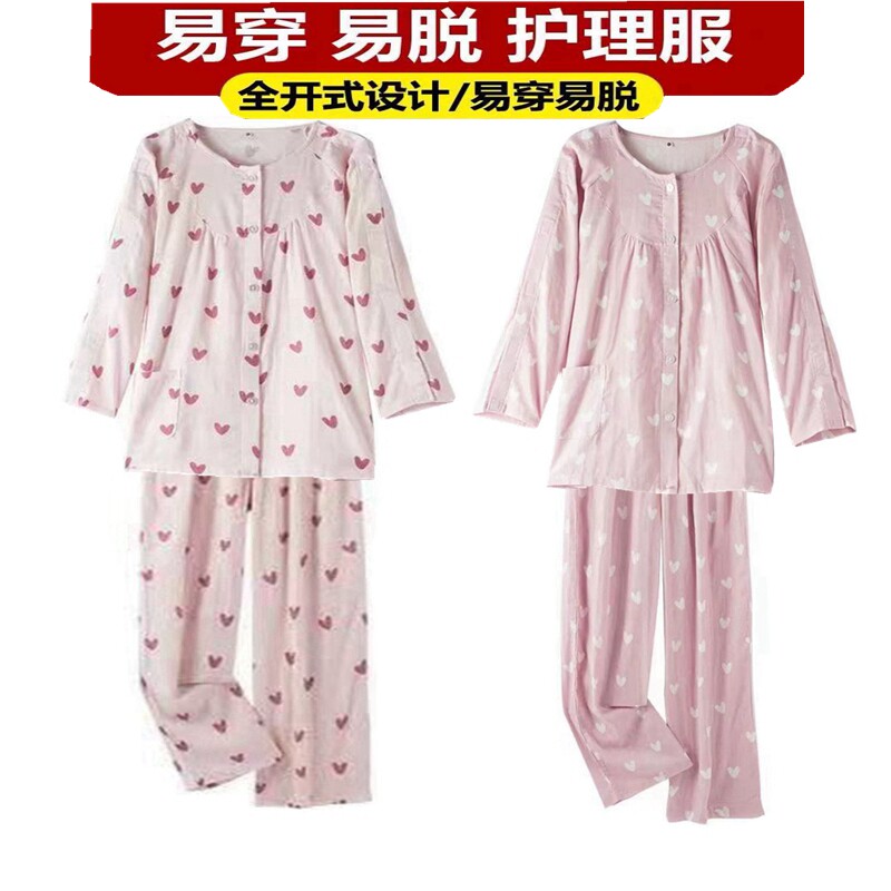 Men and women easy to put on and take off nursing clothes Xinjiang cotton fracture pants patient paralyzed elderly pajamas full open tops sick clothes