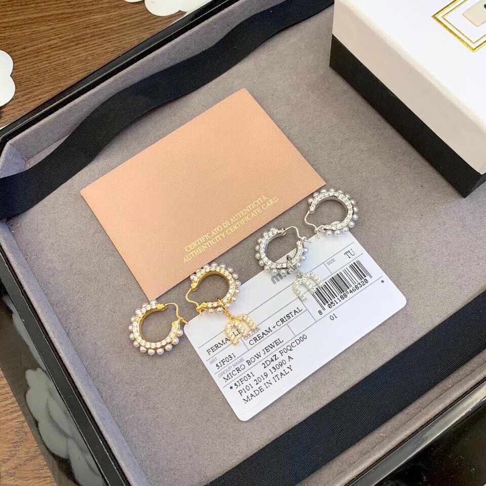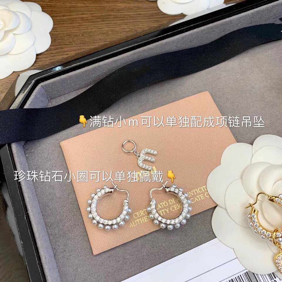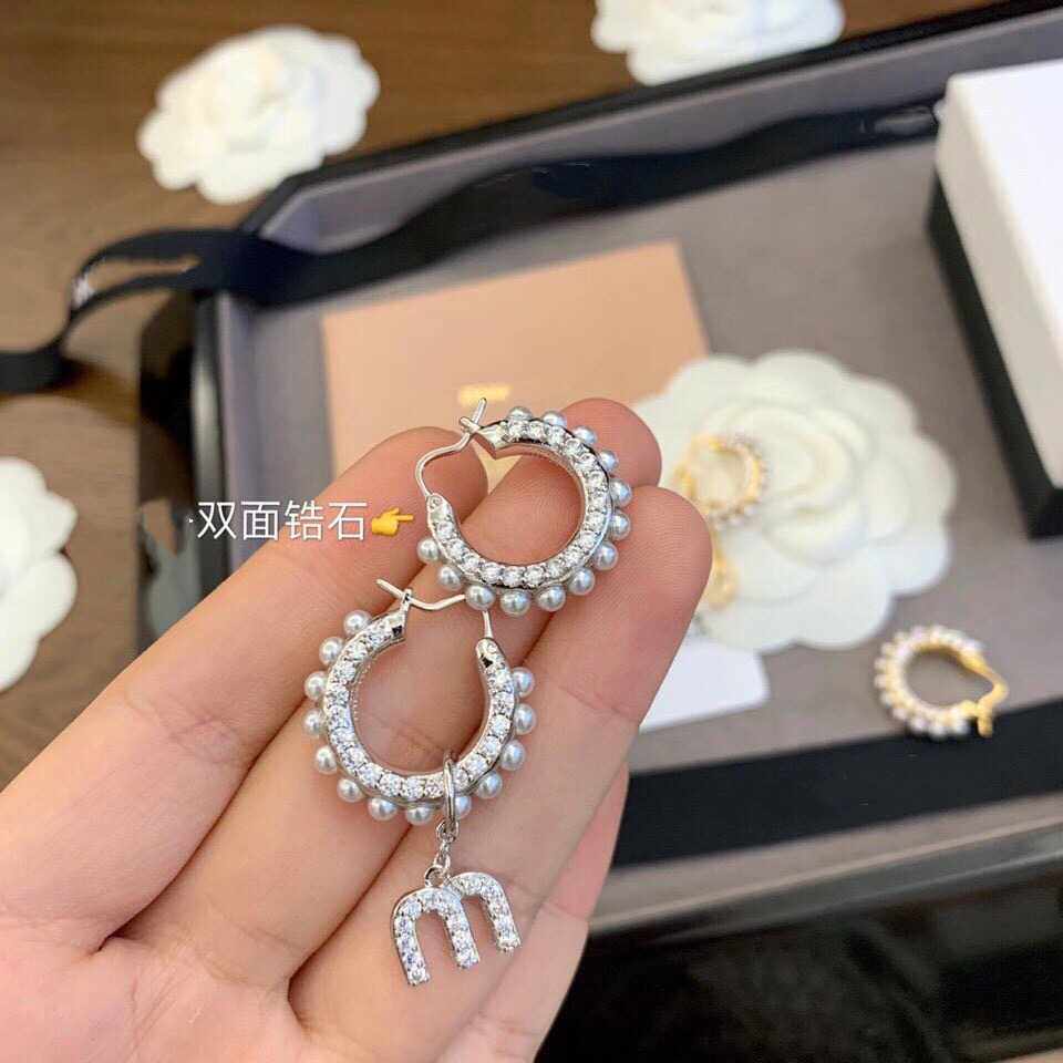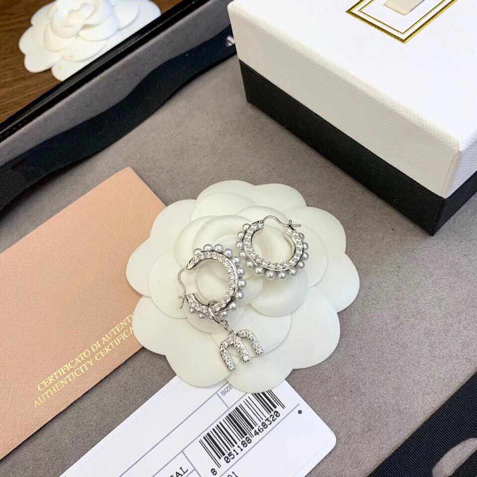 Miu new letter m pearl earrings miu asymmetric earrings sweet all-match ear pin gold and silver earrings