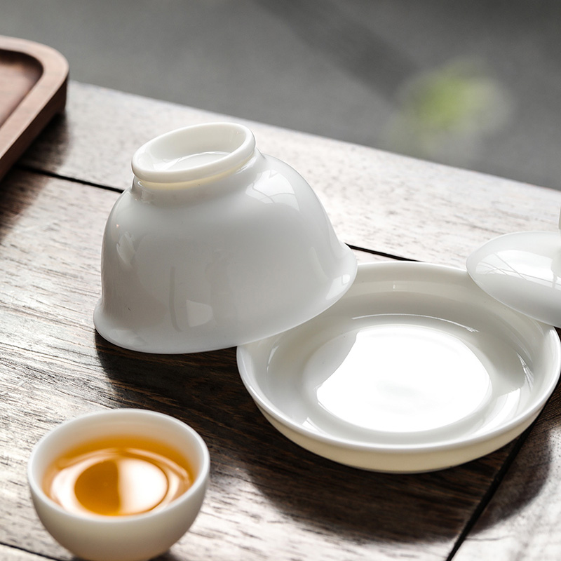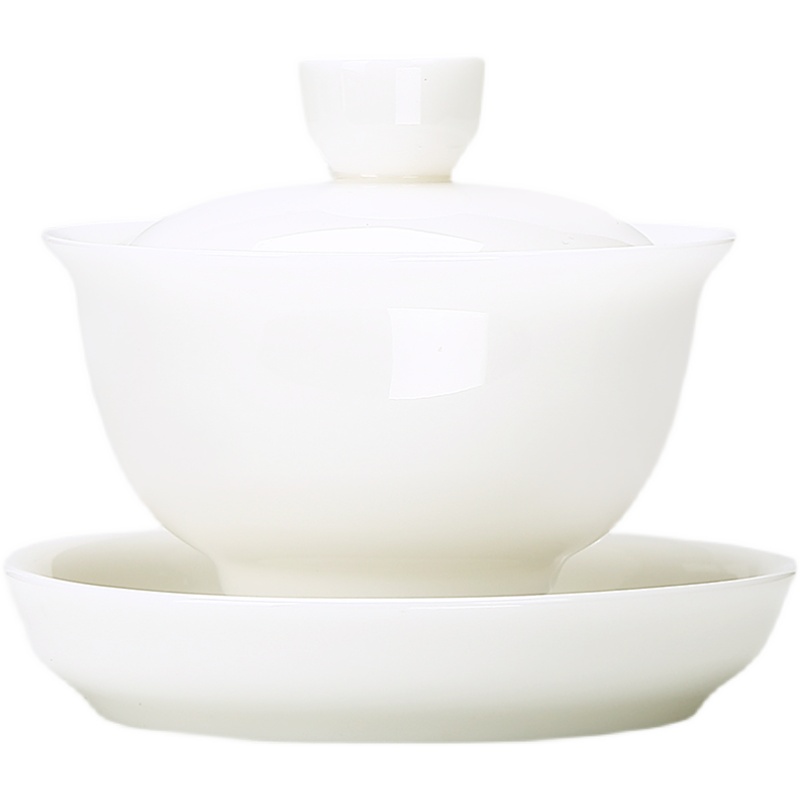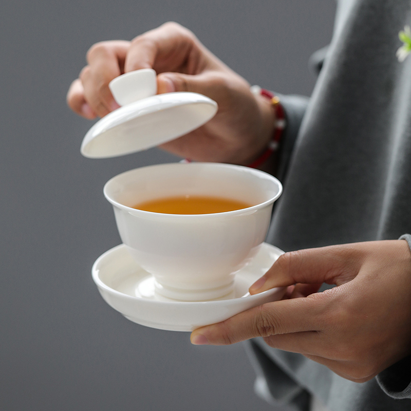 Dehua White Porcelain Cover Bowl Single Tea Cup Household Sancai Tea Bowl with Lid Ceramic Mutton Jade Kung Fu Tea Set