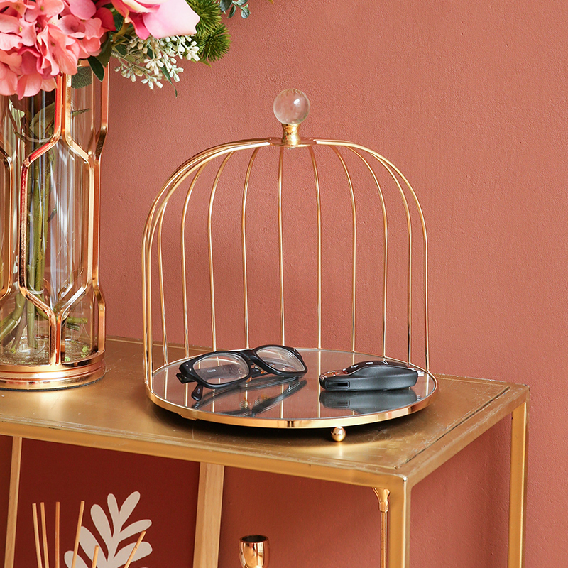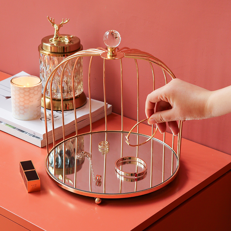 miz light luxury Nordic bird cage mirror storage tray desktop home cosmetics jewelry tray dressing table rack