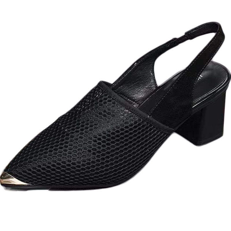 Baotou Mesh Yarn Hollowed-out Hollow Sandal Women 2022 Spring Summer New Genuine Leather Coarse Heels Empty Heels Empty Heels
