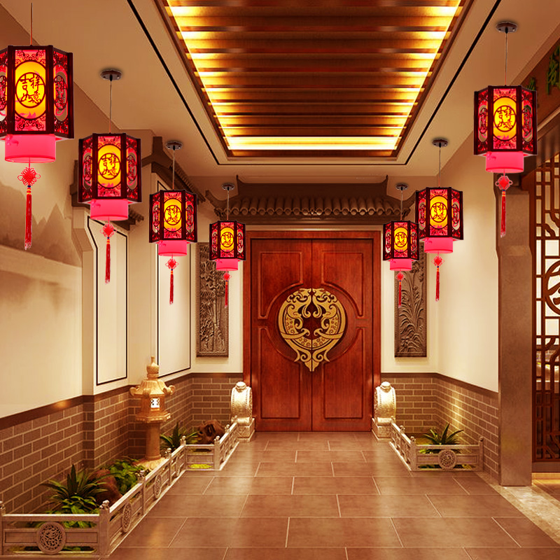 Chinese lantern big red Chinese style dining room hot pot shop aisle balcony villa gate housewarming antique palace lantern chandelier