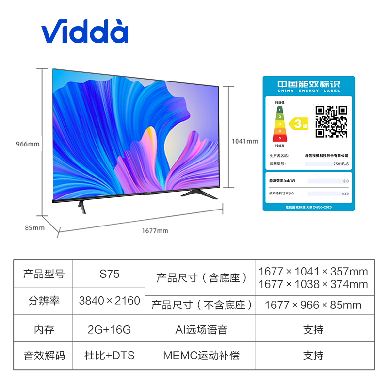 Hisense Vidda S75-inch 4K projection screen smart voice-activated network LCD TV home official hot sale 85