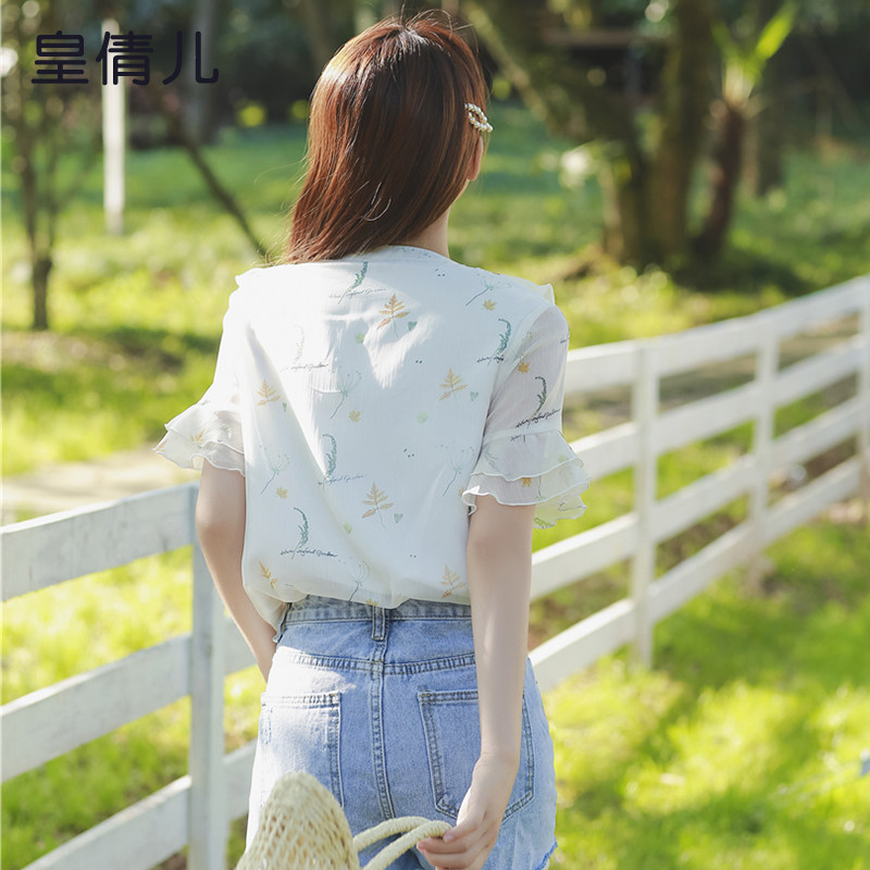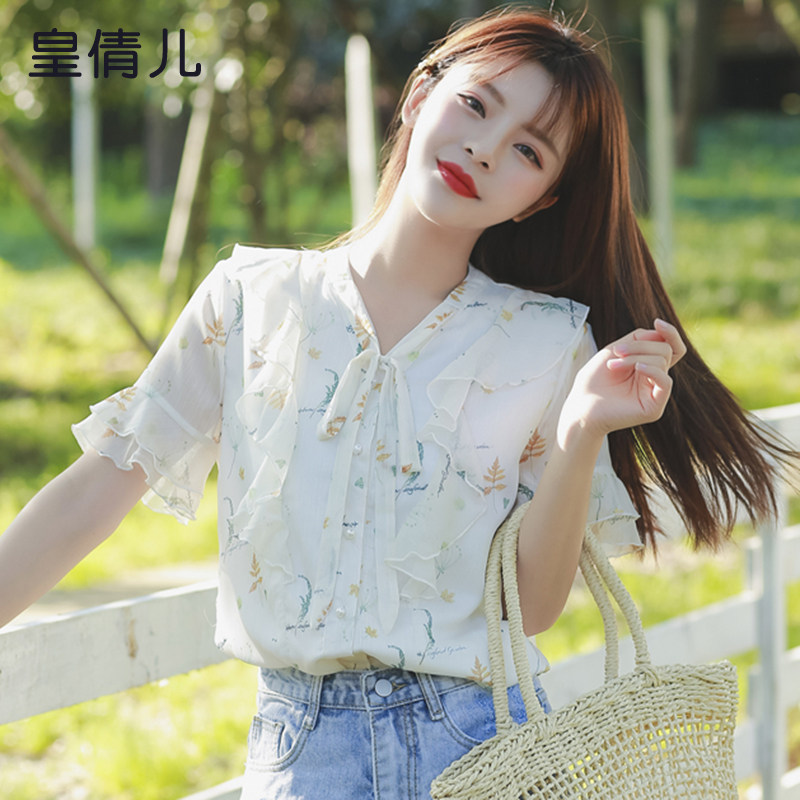 Floral chiffon shirt women's fashion Western style short-sleeved 2021 summer new summer fairy top small shirt temperament