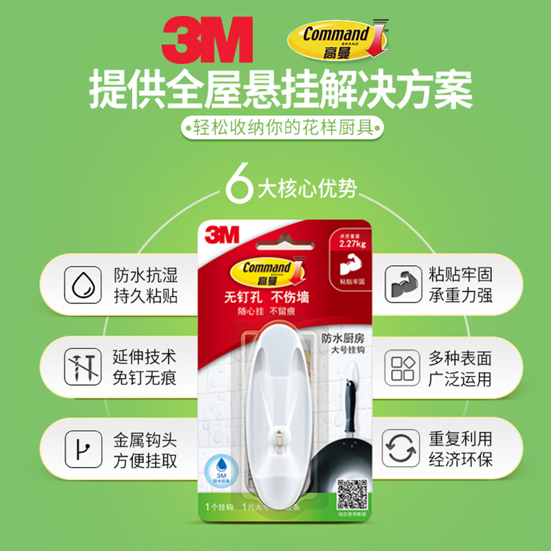 3M Kitchen Hook Large stainless steel double-sided double-sided adhesive free of punch and nail-free plastic hanging cookware rag