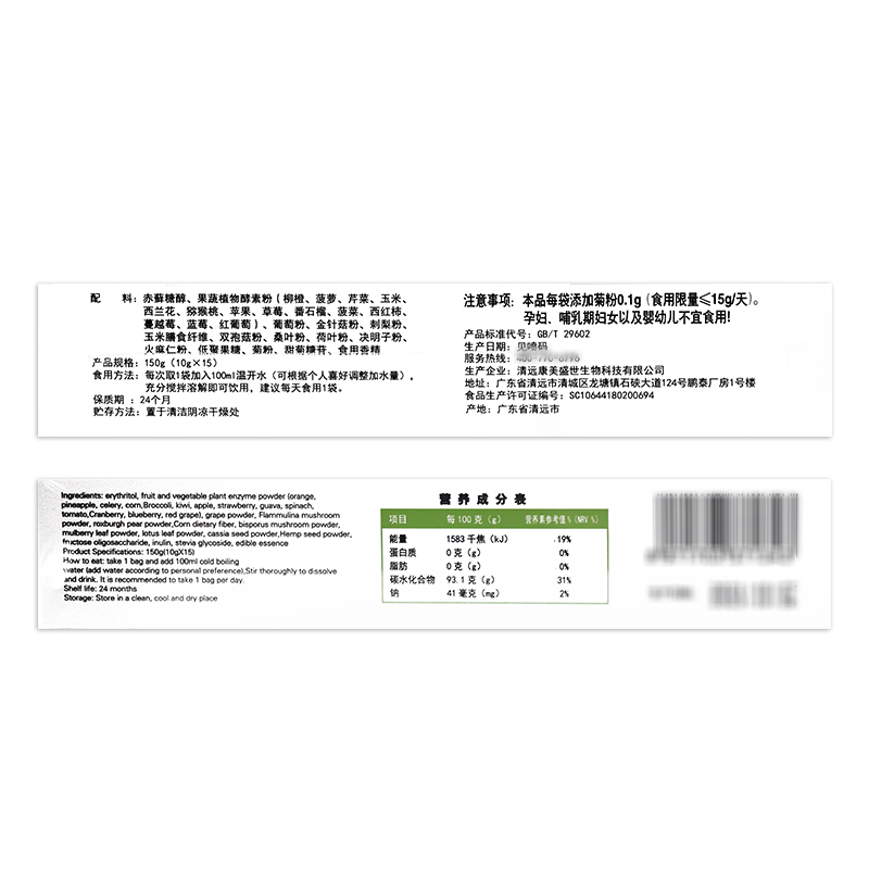 (Positive) Plastic Yimeijian Oil-expelling Compound Fruit and Vegetable Enzyme Powder Dietary Fiber Meal Replacement Powder Solid Beverage