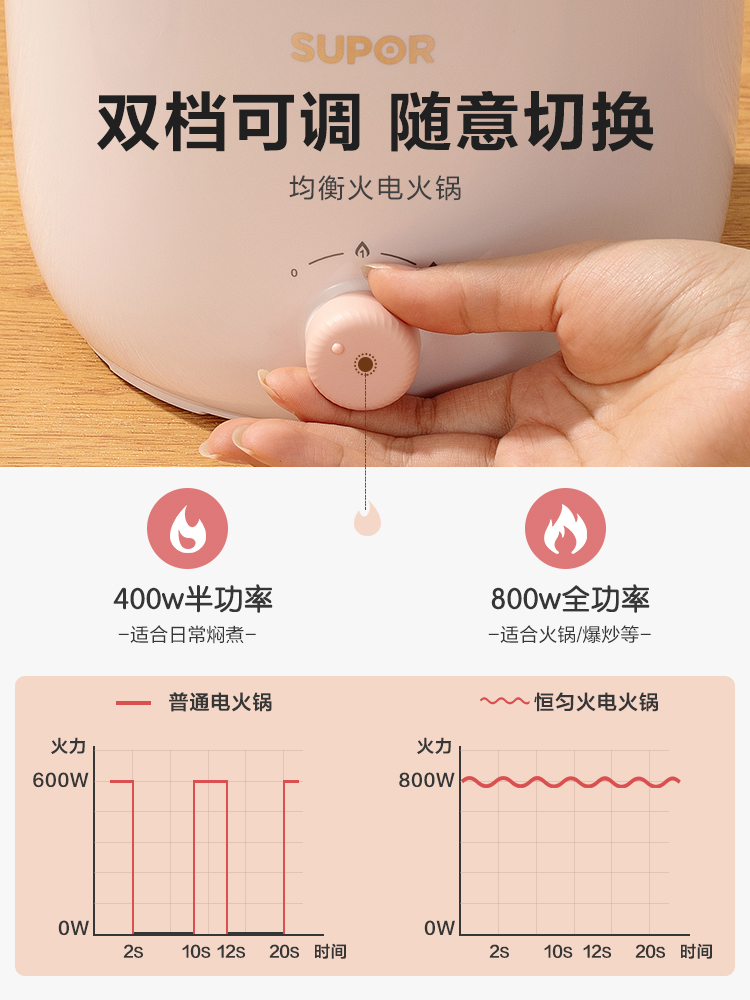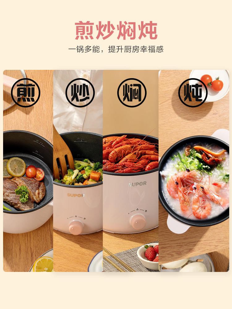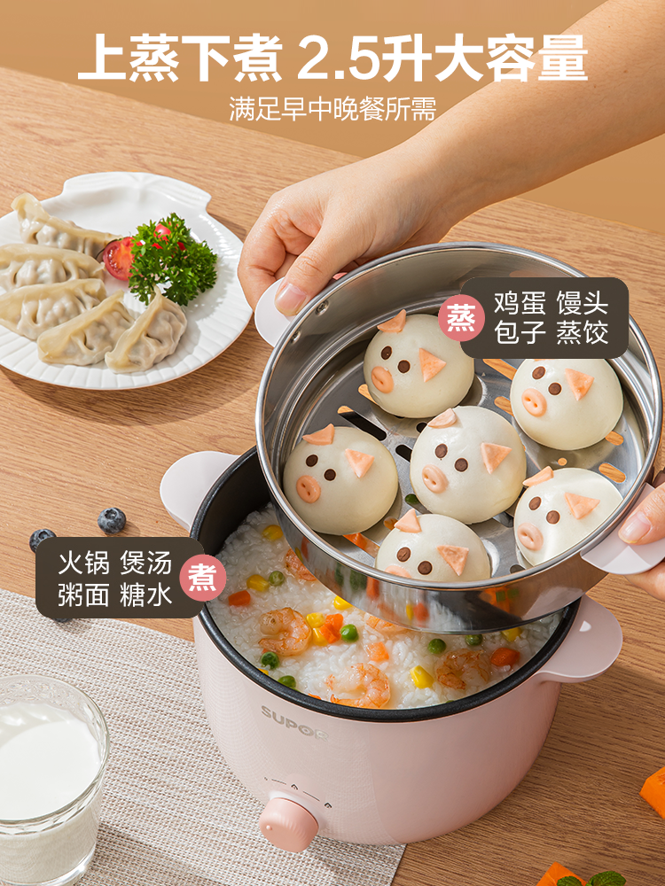Supor electric cooking pot Dormitory student pot Multi-functional instant noodles small electric pot Small power electric hot pot 3 household 2 people