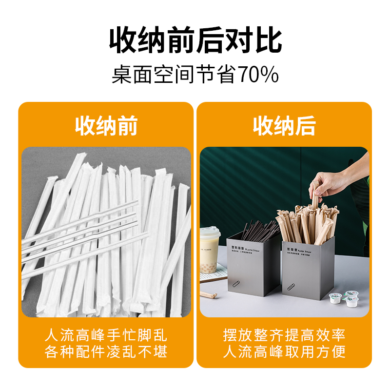 Stainless Steel Sucker Containing Box Milk Tea Shop Coffee Cup Rack Straw Bucket Ice Cream Spoon Coffee Tissue Cup Straw Box