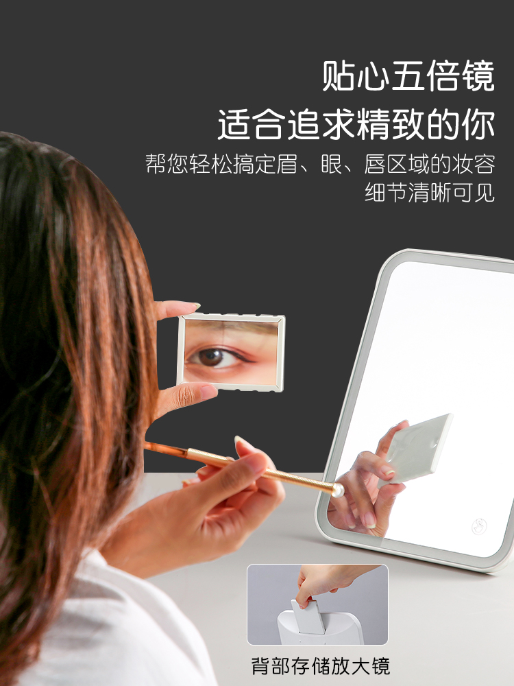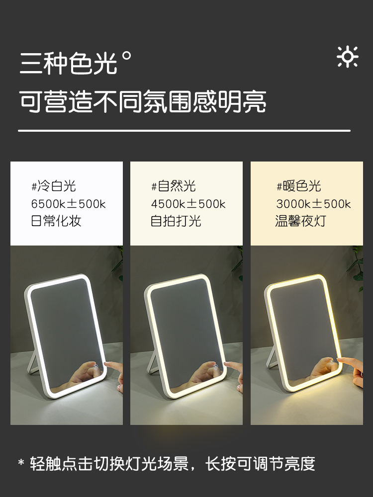 Dream blue (integrated fan and small mirror) monochromatic light (one-touch light, soft and no color cast) trichromatic light (three-color beauty light, no need to worry about makeup) trichromatic light desktop trash can (combined purchase