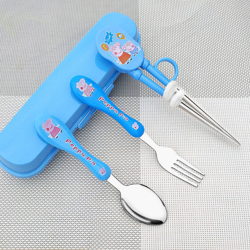 Blue Bite cat practice chopsticks One pair of blue bites Cat Practice Chopsticks Box Blue Biking Cat Practice Chopsticks Spoon Box Blue Biking Cat Practice Chopsticks Fork Box Blue Biking Cat Practice