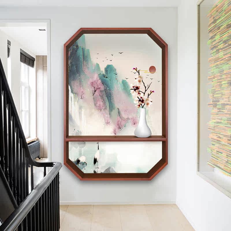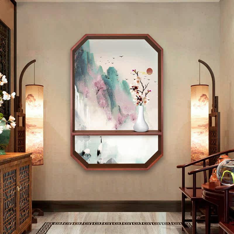Octagonal Hanging Wall Shelf New Chinese Style Decoration Painting Frame Hotel Genguan Picture Frame Zen pendant frame