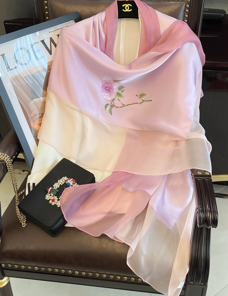 Pink Gradual Layer Mountain Tea Flowers Handmade Embroidery Real Silk Scarlet Girl Spring Summer New Mulberry Silk Embroidered Cape