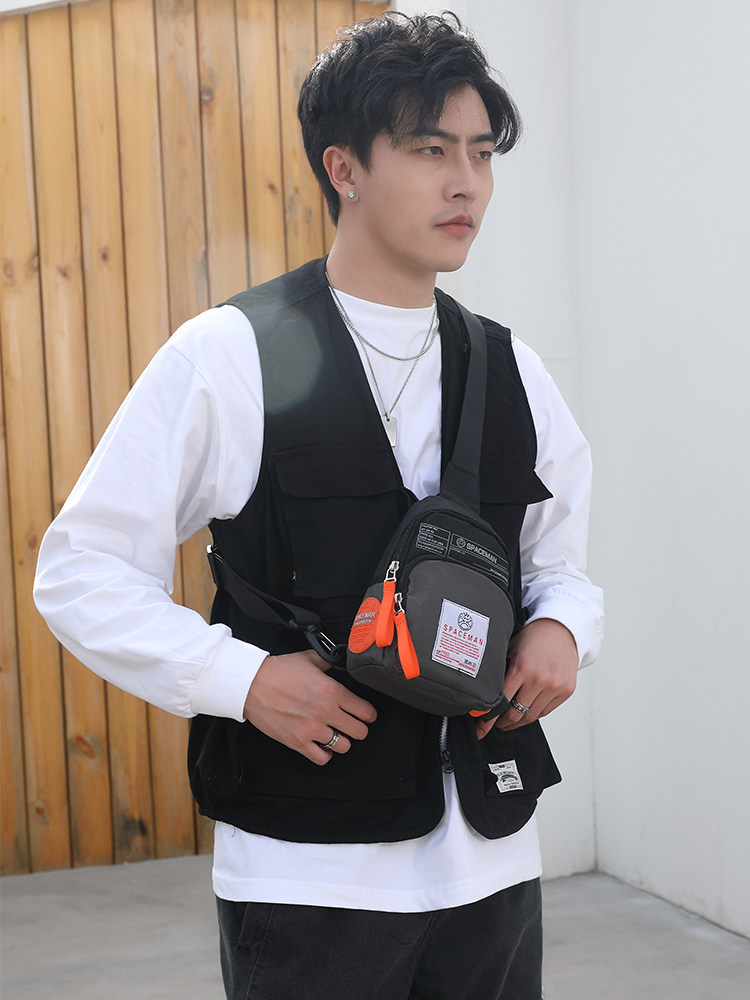 Spaman chest bag casual men's messenger bag outdoor sports shoulder bag travel canvas bag mini backpack men