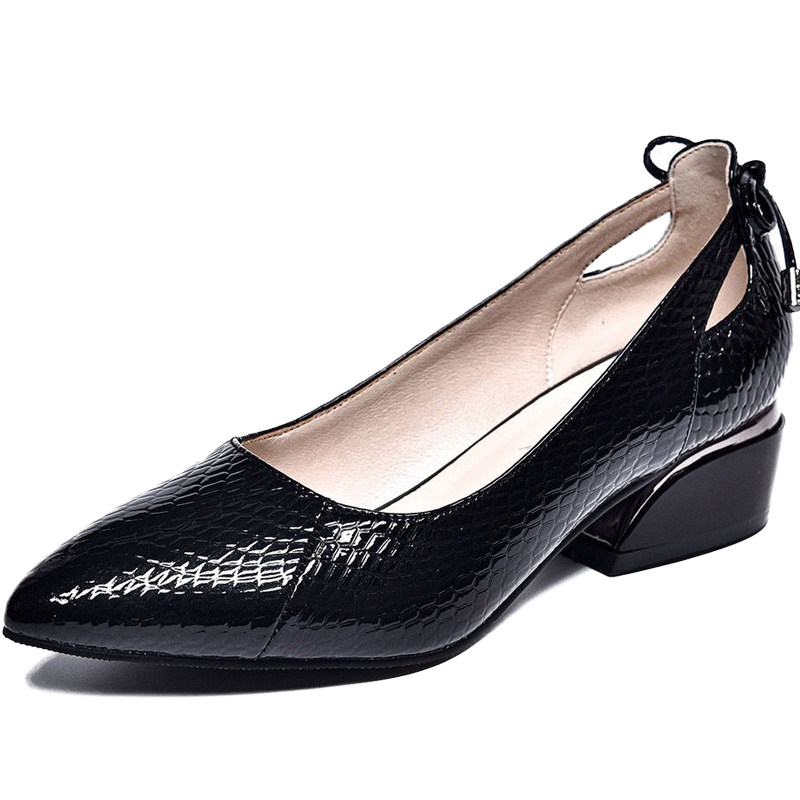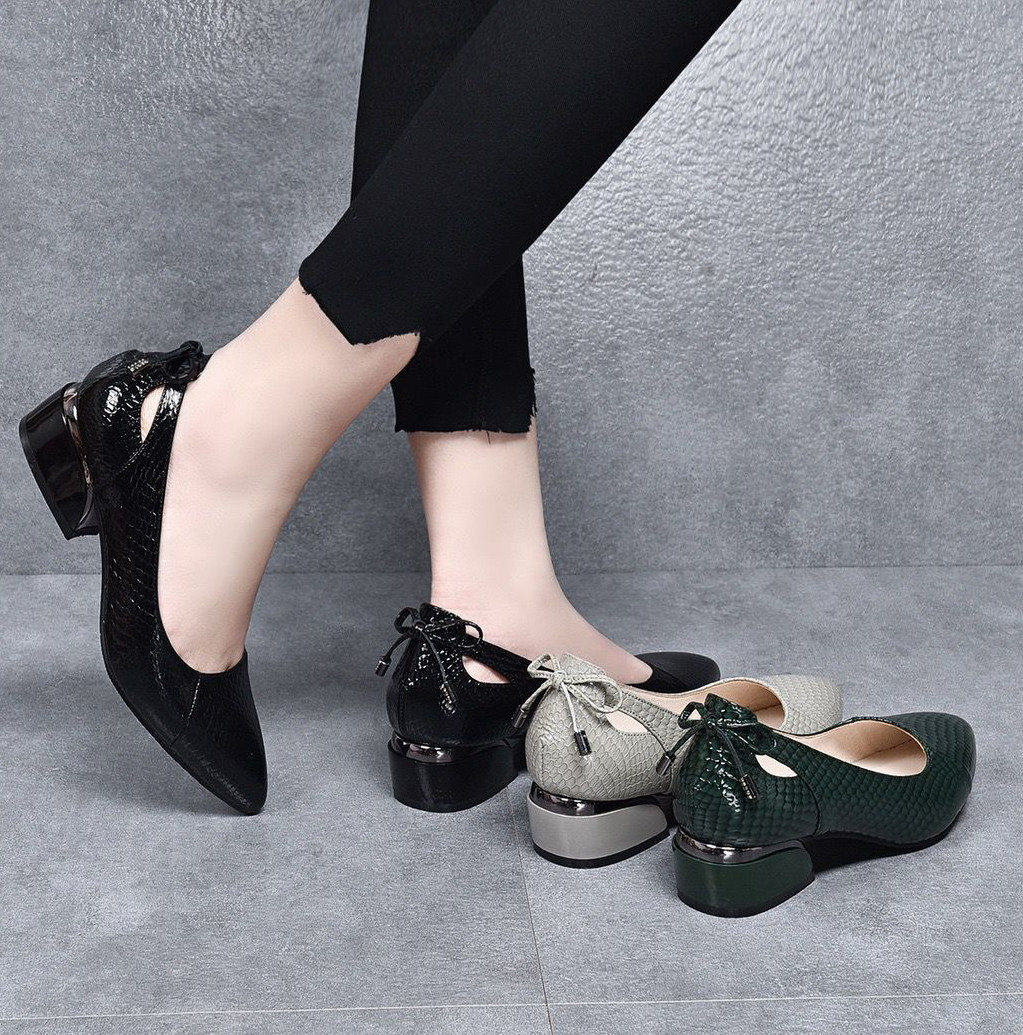 Genuine leather shoes 2022 spring style low-heel shallow mouth small leather shoes women's slip-on women's shoes spring and autumn thick heel size all-match